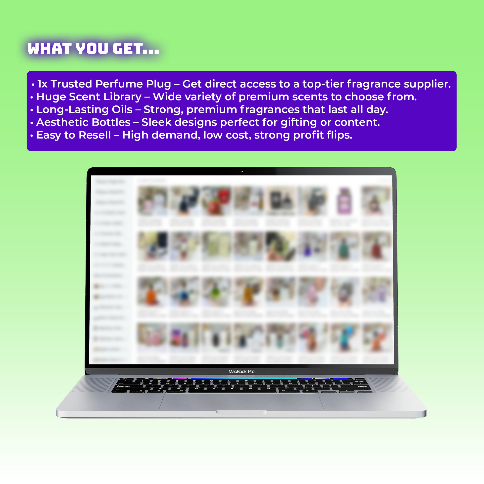 • Direct access to a trusted perfume supplier with hundreds of popular scents